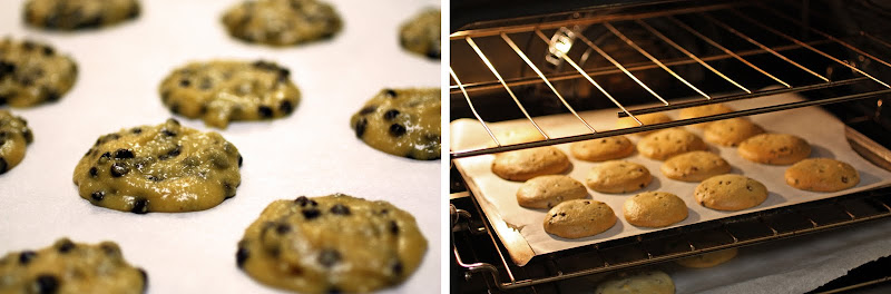 - On a parchment lined baking sheet, drop balls of cookie dough, about a tablespoon in size.