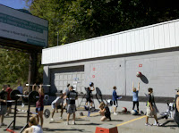 This past weekend we attended Fight Gone Bad 5. Fight Gone Bad is a fund raising event held by CrossFit’s affiliates, that was started in 2006. For the event, there is a workout called “Fight Gone Bad”, that takes place at any CrossFit that wishes to hold this event. This, like many other CrossFit workouts, is something that you probably only want to take part in once a year, and for some it may take a whole year to recover from this intense one! The workout consists of moving through five stations, each station you work for a minute. The goal is to push through as many reps as you can in a minute. There is a one minute break before starting another round, and the workout consists of three rounds. Your score for the workout is the total amount of reps completed at each station for all three rounds. The stations for the workout are: