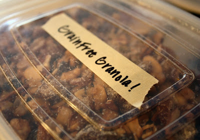 I wasn’t exactly sure what I was going to do for the granola, so I just let my foodie intuition guide me. I first read up a bit on soaking and dehydrating nuts. Soaking the nuts in salt and warm water activates their enzymes, and dehydrating the nuts preserves their enzymes, all while creating a wonderful crispy, crunchy snack. I figured that once I had my crispy nuts made, the rest would be a piece of cake. The crispy nuts are very time consuming, and inconvenient if you do not have a food dehydrator (which we didn’t at the time of making these). If using your oven, you have to roast the nuts on a very low heat, about 110 degrees for 10-12 hours. If your oven does not go this low, then you must put it on the lowest temp and leave the oven door ajar.