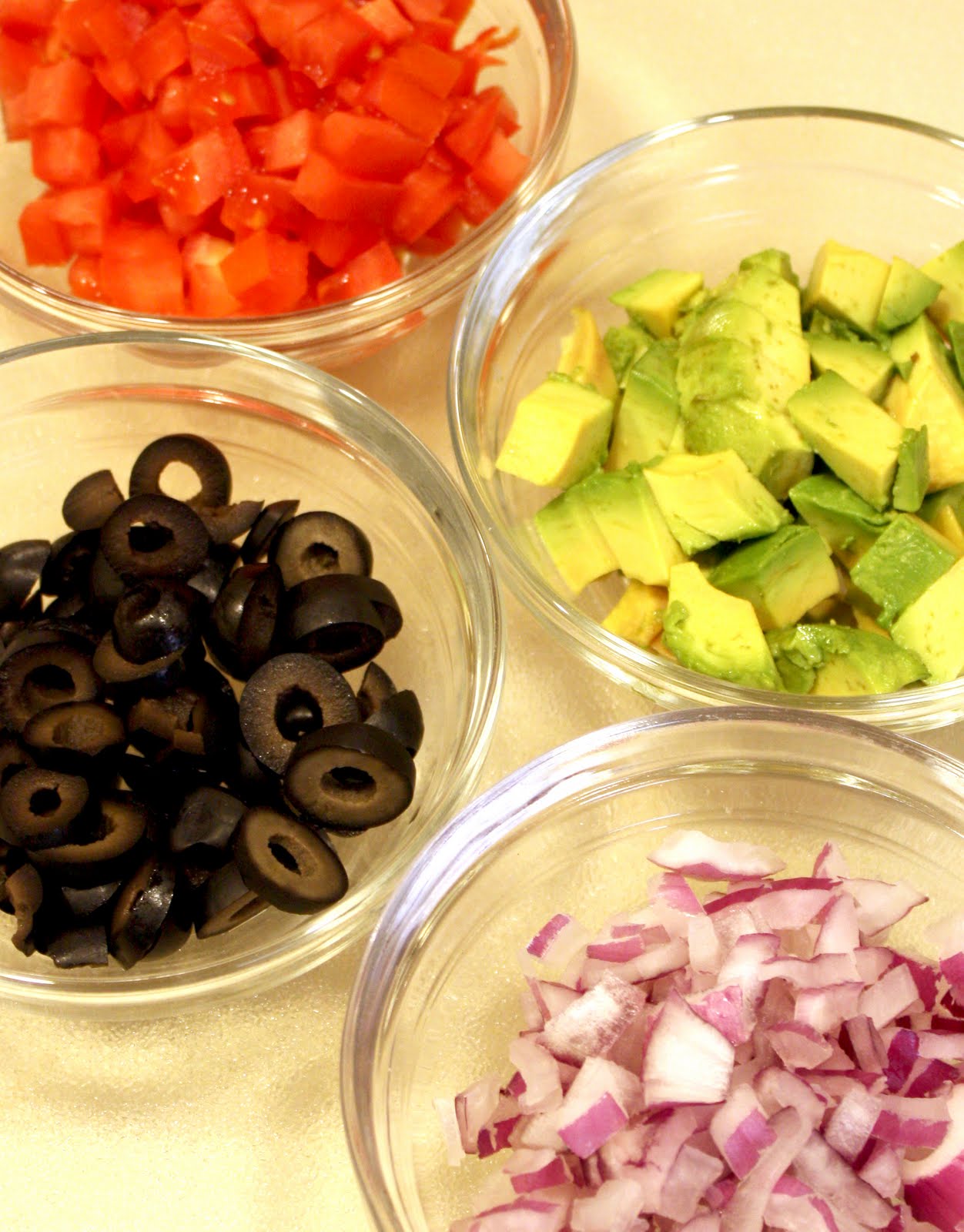 - Place 1/2 cup of ground turkey on a lettuce leaf, then put on the toppings of your choice. I typically do all the toppings shown at right (onion, avocado, tomato & black olives).