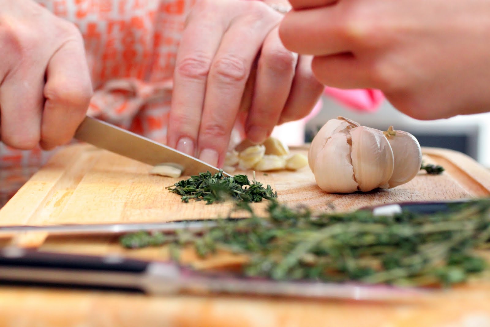 - Peel cloves of garlic and poke the lamb with a knife to place cloves of garlic into the meat (the more the merrier!).