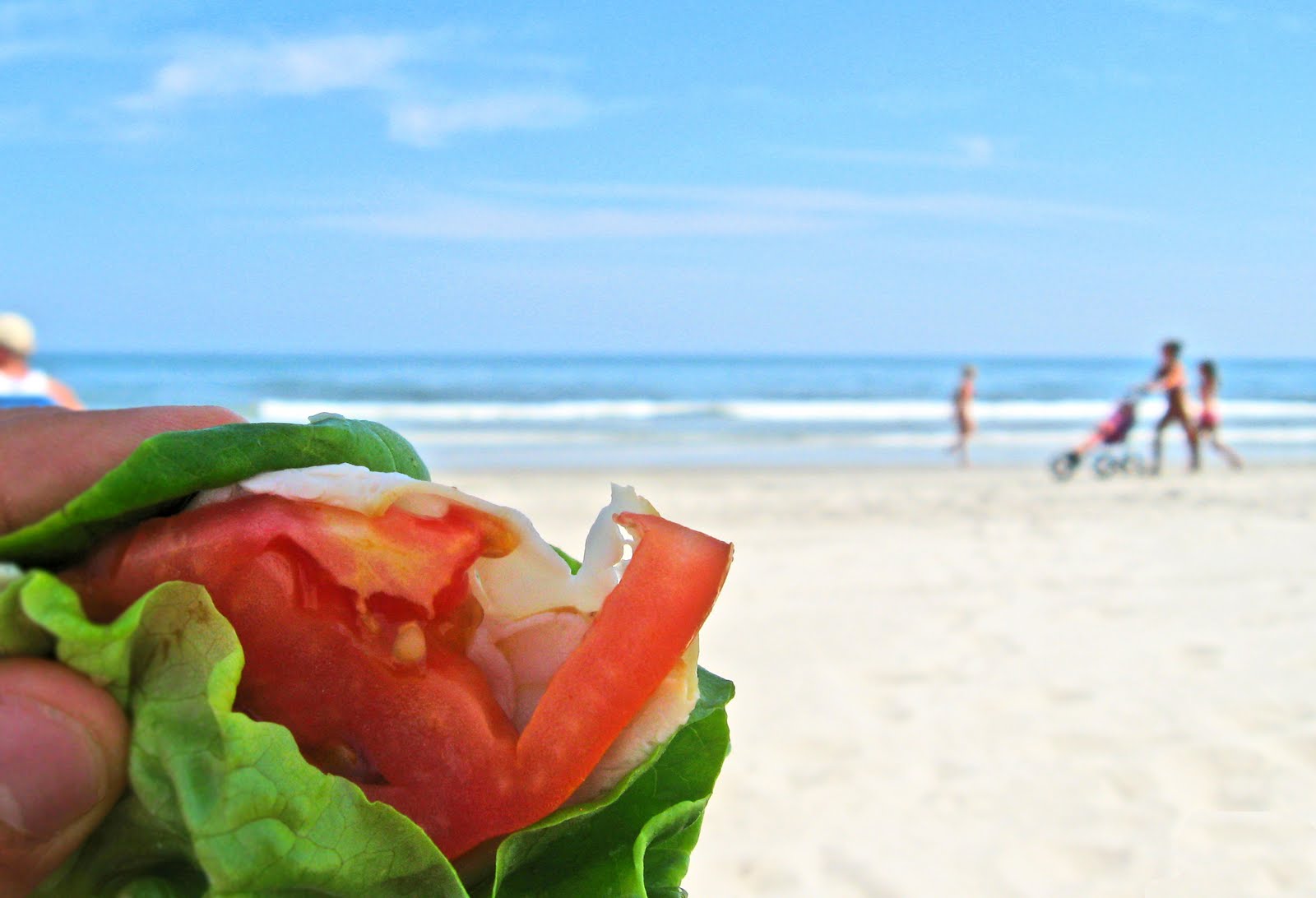 Bill and I decided to take the weekend and make one last escape to Stone Harbor for the summer. Something that I think we were both looking forward to more than the calm of the ocean for two days was the local farmers market on the island. Since this was a quick trip, we needed to come up with some simple meal ideas for the two days we would be there. We started off our mornings with our usual veggie scramble, and ended the day with local fresh fish and veggies on the grill, but the quick meal we want to highlight on this trip was the one we put together for lunch.