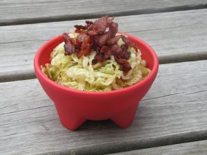 I know this isn't a super complicated recipe, but bear with me it is DELICIOUS! Magic happens when bacon and cabbage meet up with an appearance by apple-cider vinegar.You may have seen savoy cabbage in the grocery store and wondered “what is up with cabbage’s cousin”? It may look rough, tough and mean but it is actually a lot more tender and delicate than regular cabbage or red cabbage, thus making it perfect for slaws, salads, sautéing, or wraps. I like to sauté savoy cabbage because it takes no time time to tenderize so it is a quick side-dish, add some bacon…DONE AND DONE!