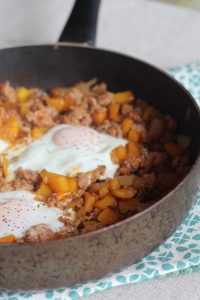 I came up with this new spin on a familiar family favorite back in October while testing Halloween recipes. I had a jar of strained tomatoes in the pantry and some ground beef and half of a cooked spaghetti squash in the fridge, and somehow I arrived at Spaghetti and Meatball Soup after not wanting to make the usual spaghetti squash with bolognese. I kept the meatballs really simple with just some salt, pepper, garlic powder and onion powder but used actual onion and garlic in the “sauce” for a bit of a fresher flavor. Even though the meatball ingredients are simple, if you have children or another helper handy, I highly recommend recruiting them as your meatball rollers since that step can be a bit tedious due to their small size!