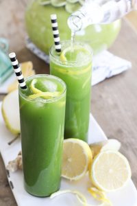 Last year I spent some time researching juicers because I wanted to incorporate juices in to my diet. After much time researching I finally decided on one. I picked up some veggies on the way home and then immediately started making a drink. I was used to drinking them and really didn’t think much about how “green” it tasted. However, the first time I gave my husband one he took a sip and looked at me as if I was trying to murder him or something. Needless to say, some people need to get used to drinking greens in a juice. It got me thinking a lot about ways to use my juicer to make juices for people who weren’t used to them and also for entertaining. I wanted people to see that healthy foods can be fun and festive too!