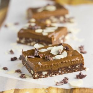 I decided to combine two of my recipes - the base layer of my Raw Peppermint Slice with a top layer of my Easy Chocolate Mousse, and I came up with this Raw Chocolate Mousse Brownie. This slice is pure chocolate heaven and you don't have to feel guilty if you decide to eat an extra piece, which just might happen!