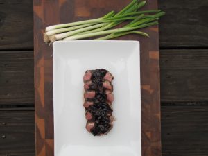 A delicious way to enjoy duck breast. Super crispy Chinese 5-Spice rubbed skin, topped off with a strawberry-balsamic reduction! Is duck considered seafood?!?! ;)