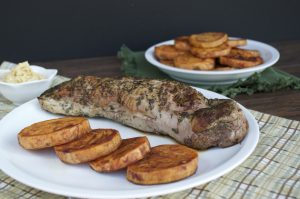This pan seared steak is part of our regular dinner rotation because its easy to make using a cast iron pan versus the grill and comes out perfectly medium rare and juicy. A dry rub of salt, pepper, onion and garlic powder and paprika gives the steak great flavor and I finish it with a garlic rosemary butter sauce mixed with the pan drippings. Move over A1!