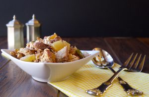 Bonjour! Things are getting all French over here at WWJME. Roulade literally means “to roll” in French. Oui! It can be hard to get creative cooking for one . I bought one center cut pork chop and decided to make a stuffed chop. I split it in half, pounded it out, added the filling, wrapped in bacon and boom, done! It is a great way to get away from the typical grilled or baked pork chops, it takes a little prep work but it is so worth it.