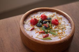 This is great plain on its own, but I love adding a seasonal fruit for a little extra culinary flavor. Try topping it with some hemp or flax seeds, almonds, tahini, mint ribbons, and a sprinkle of cinnamon!