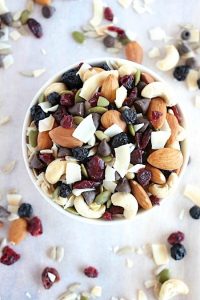 All natural, quick and easy, crisp and crunchy, tart and chewy, buttery, sweet, deliciously indulgent, healthy, homemade trail mix.