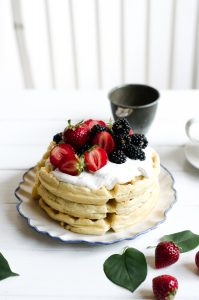 These Paleo Belgian Waffles are incredibly light and fluffy (and not "eggy")! This lovely stack of delicious waffles are nicely golden brown on the outside and soft on the inside. Incredible flavor, grain free, and easy to make!