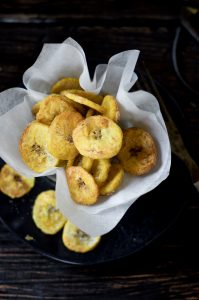 Today I am going to demonstrate how to make plantain chips (yay!). I couldn’t be more excited. And for such a little thing, oh my. Ever had plantain chips? If not, it’s a must! I am so attached to these delicious chips. The earthly sweetness from the plantain mingling with a bit of sea salt… first of all it’s amazing. Second, it’s a healthy snack and it’s paleo.
