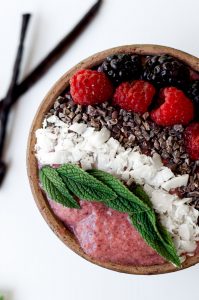 This fresh and vibrant smoothie bowl is dairy free, vegan, and paleo. Made with fresh seasonal blackberries and three other simple ingredients. This healthy breakfast bowl is a fantastic 5 minute recipe for any day. And topped with fresh summer fruits… yes please!