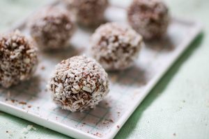 These Chocolate Almond Date Balls are perfect for a mid-afternoon pick me up or pre-workout snack. Personally, I love mine to be a little crunchy, but I know a lot of people don’t. If you want a crunchier ball, instead of placing all of the ingredients into your food processor at once as the recipe states, simply add the almonds to the food processor first, grind until they are at your desired consistency and then set aside. Combine the other ingredients well and then add the nuts back in, pulsing a few times to make sure the mixture is well combined before rolling.