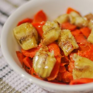 My FAVORITE Thanksgiving side dish growing up was the “sweet potato soufflé”. When my mom would ask us what dishes we wanted in the Thanksgiving round-up, I always made sure that was included. So when I decided to re-create the dish, I took a look at the recipe…and saw that it calls for TWO CUPS of sugar (some recipes also call for a marshmallow topping)! No wonder I always liked it!