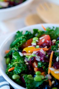 A fresh, sweet take on Kale. Whip it up in 15 minutes, let rest in the fridge for 1 hour and voila! A salad jam packed with nutrients and delicious to boot. Even kids love it!